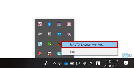 화면 우측 하단에서 R.AUTO License Server Tray 아이콘 선택 > “R.AUTO License Monitor…” 선택