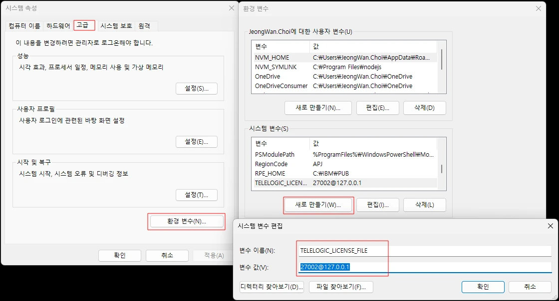 | 변수 이름 | TELELOGIC_LICENSE_FILE |