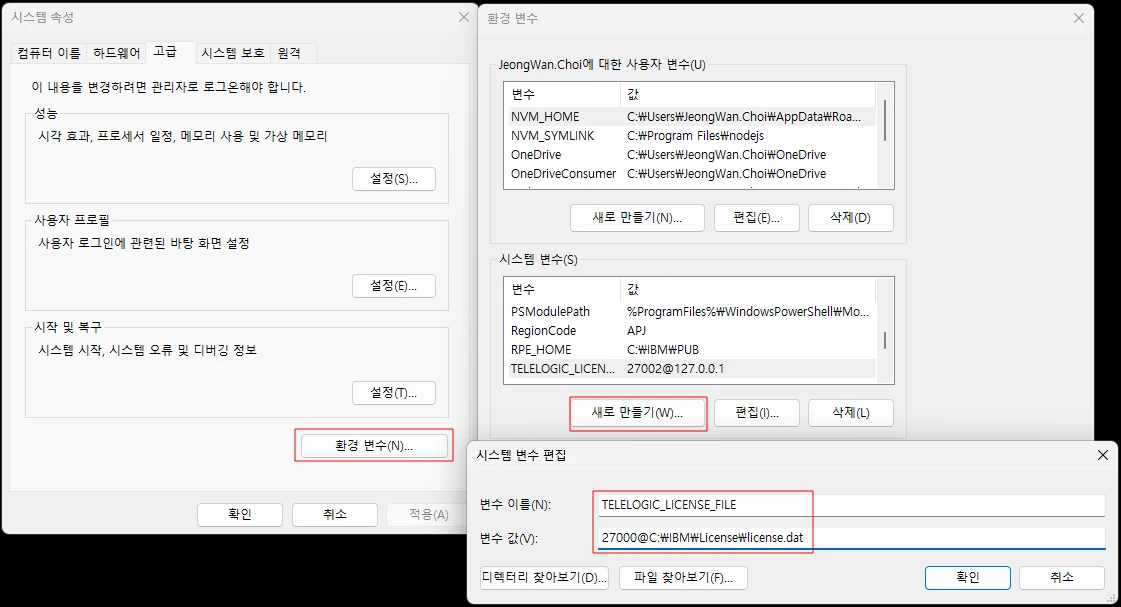 | 변수 이름 | TELELOGIC_LICENSE_FILE |