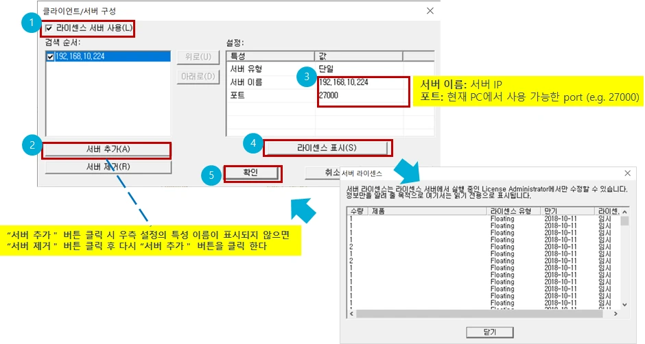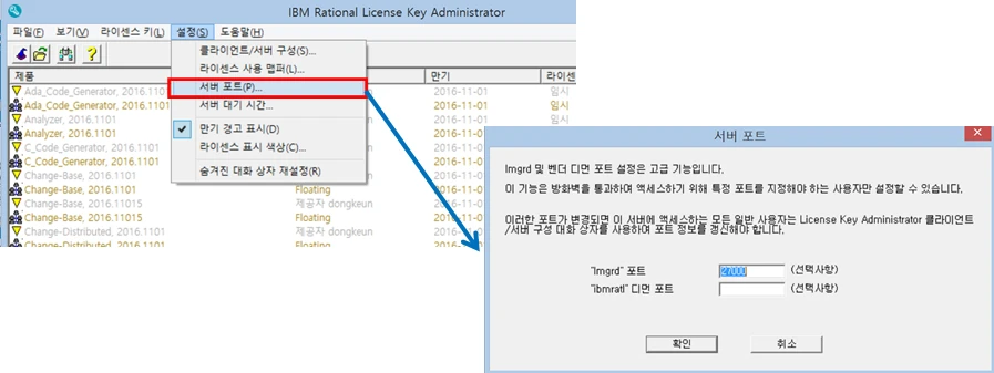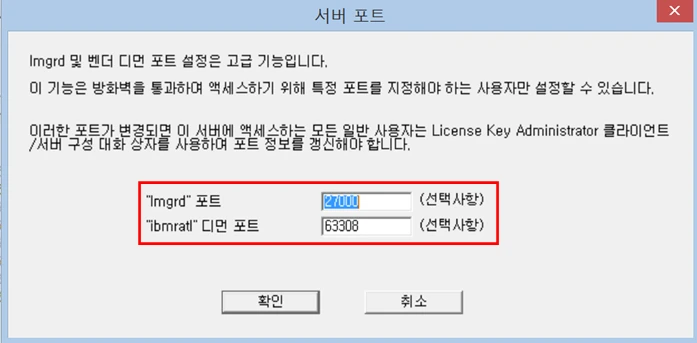 - License Key Administrator 실행 > 설정 > “서버 포트” 실행