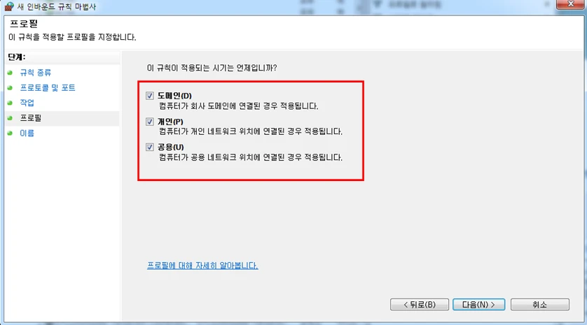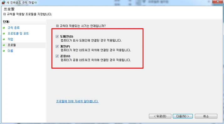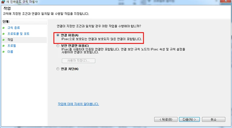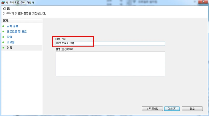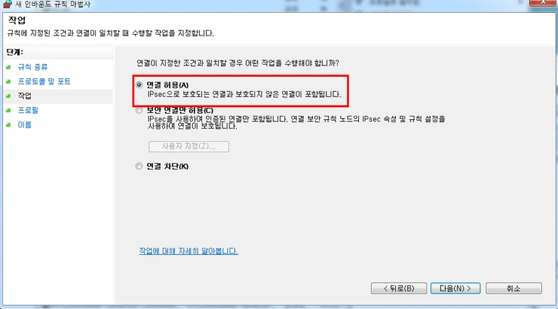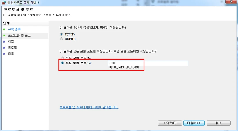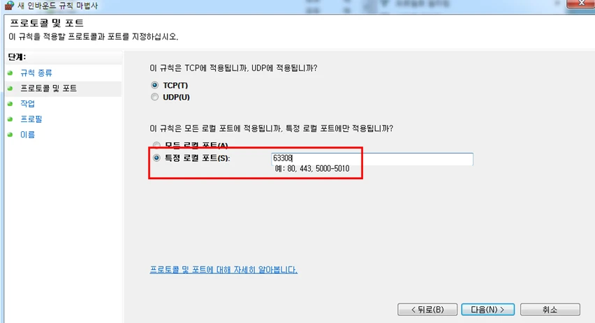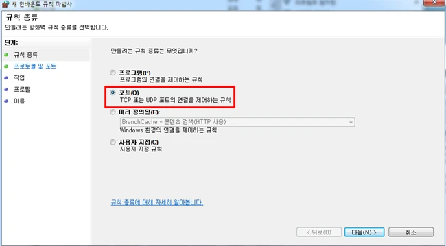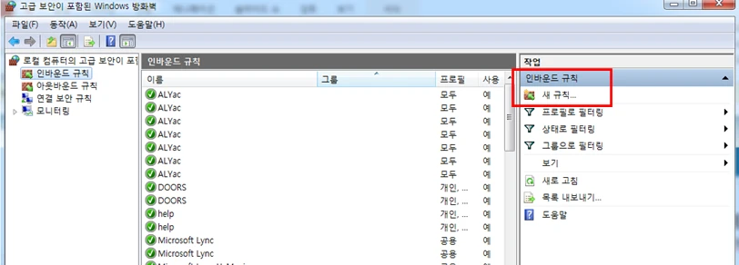 - Windows 방화벽 > 고급 설정 > 인바운드 규칙 > 새 규칙