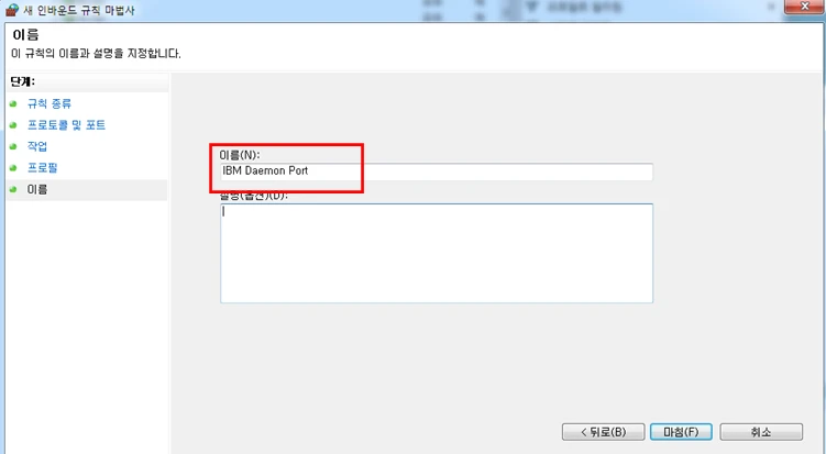 “ibmratl” 디먼 포트(데몬 포트): 예) 63308