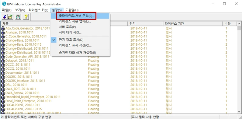 - 설정 > 클라이언트/서버 구성을 클릭한다.