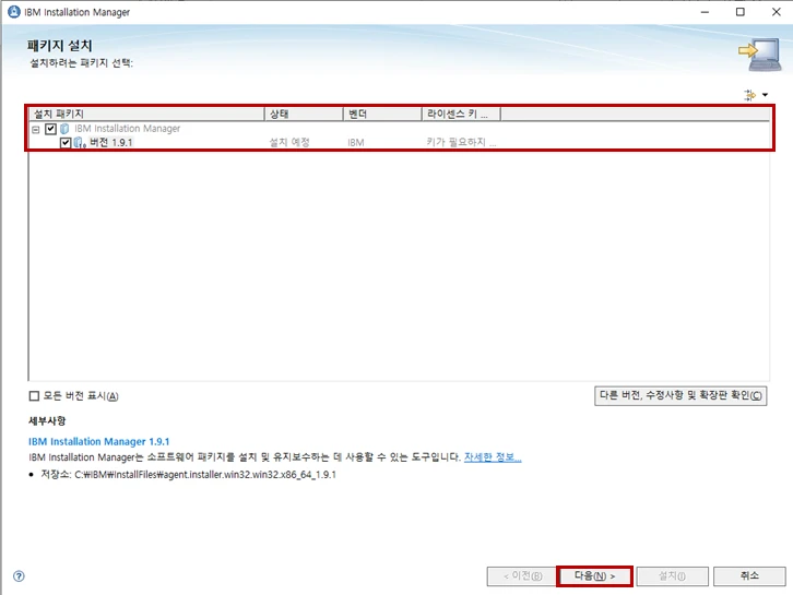 - 설치하려는 패키지 선택 후 다음 버튼 클릭