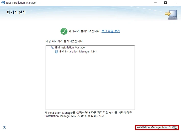- 아래와 같은 화면이 보이면 IBM Rational Installation Manager설치가 완료 된 것이다.