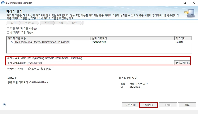 설치 경로 중, C:\Program Files는 삭제하고 C:\IBM~ 로 설치 경로를 지정한다.