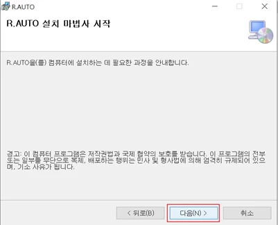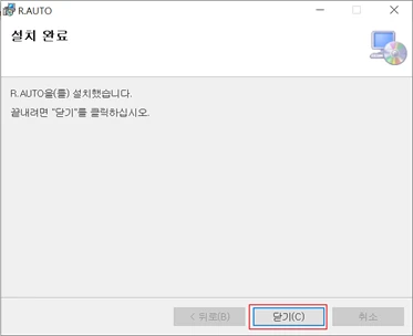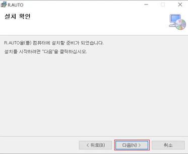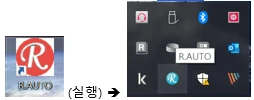 설치 완료 후 바탕화면의 R.AUTO 아이콘을 실행하면 화면 우측 하단에 R.AUTO 트레이 아이콘이 생성된다.