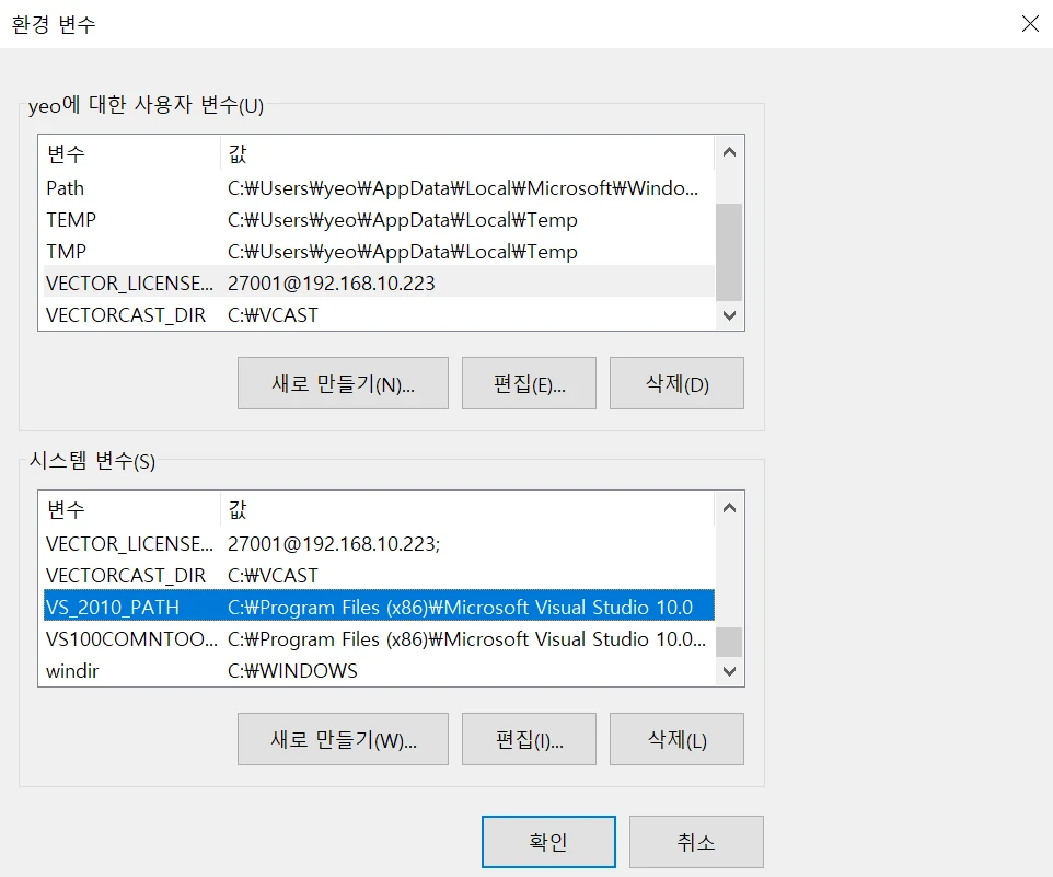 설치한 Visual Studio 컴파일러 Home Path를 환경변수에 추가한다.