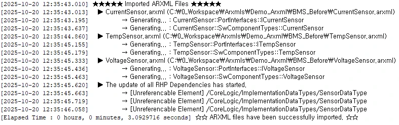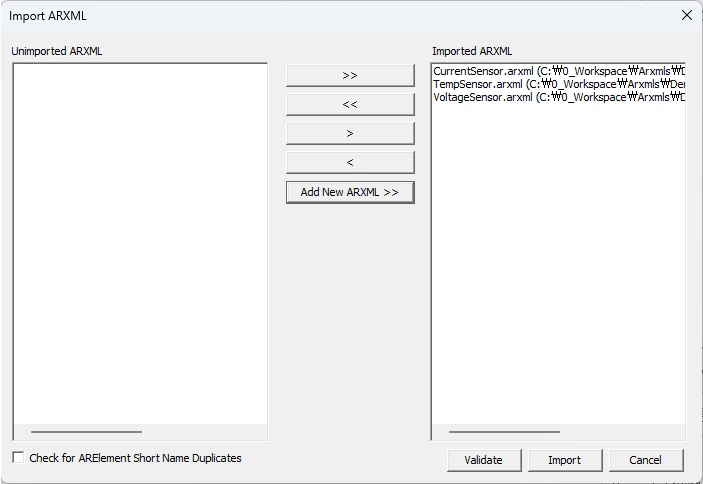 Add New ARXML >> 버튼을 눌러서 Import할 파일 선택