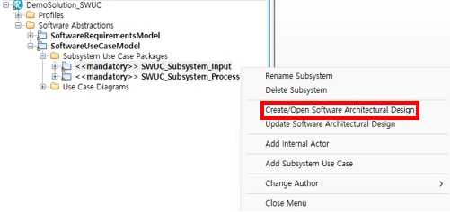 Context Menu에서 Create/Open Software Architectural Design 실행