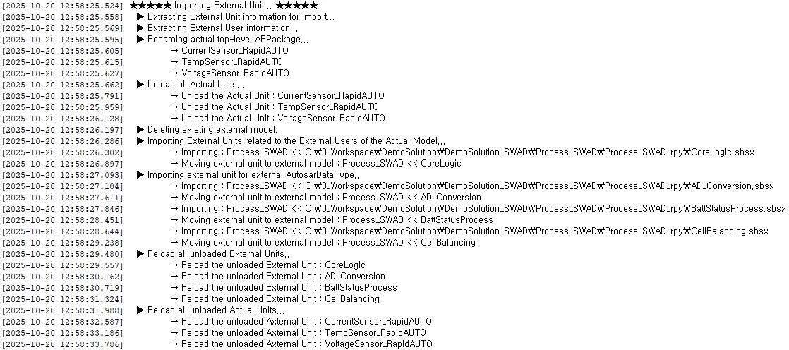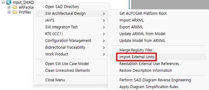 SWAD Context Menu에서 SW Architectural Design > Import External Units 기능 실행